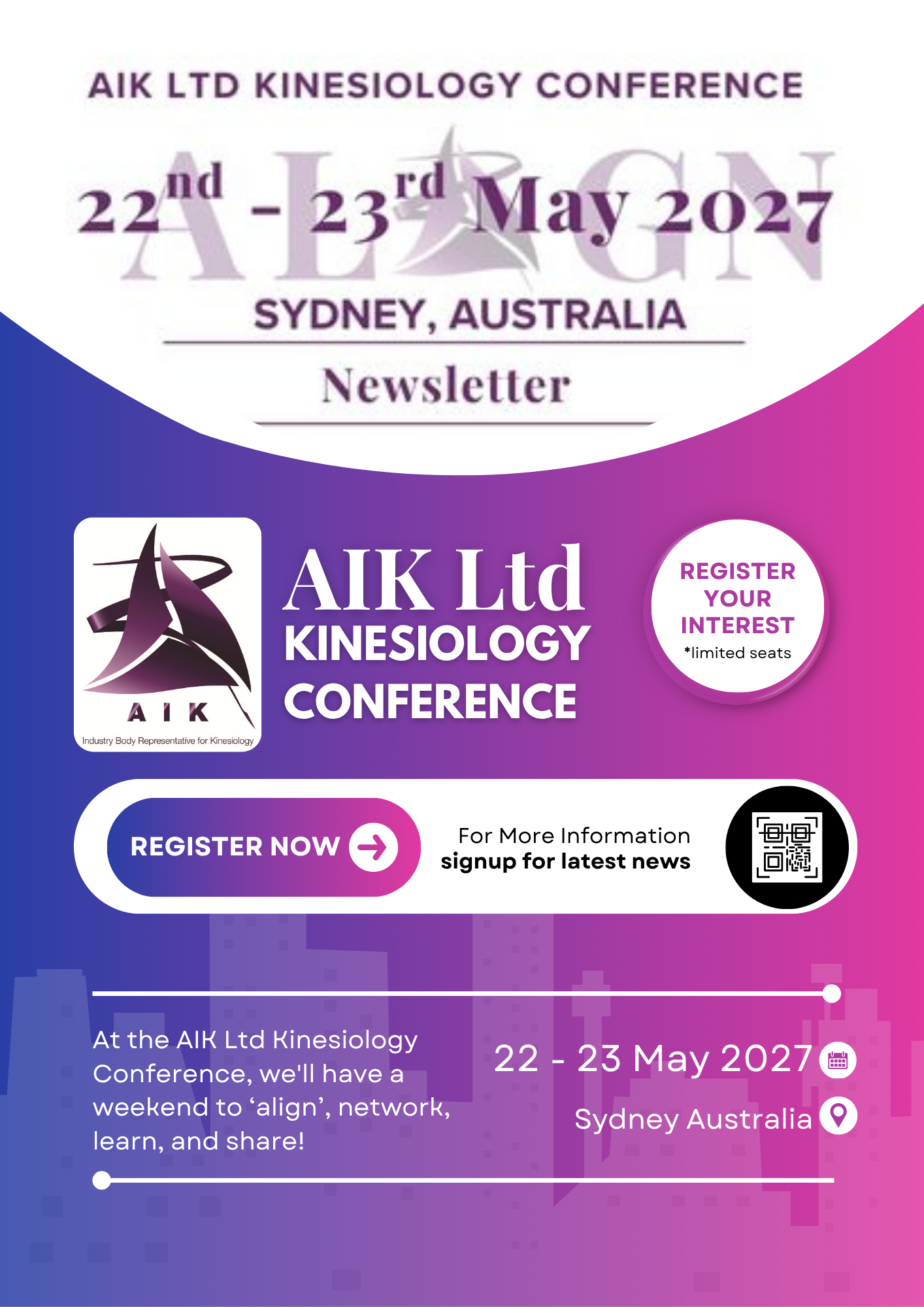 Established in 1989 the Australian Institute of Kinesiologists Ltd (AIK Ltd) is known as the “The Institute” or the “AIK Ltd” and is a democratic, open organization developed to represent Kinesiology and Kinesiology Practitioners throughout Australia and Internationally and is an Industry peak governing leader.